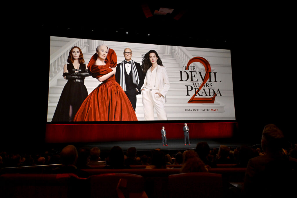 Matt Kalavsky, y Andrew Cripps en la presentación de El Diablo viste a la Moda 2. Foto por David Becker/Getty Images para la CinemaCon.